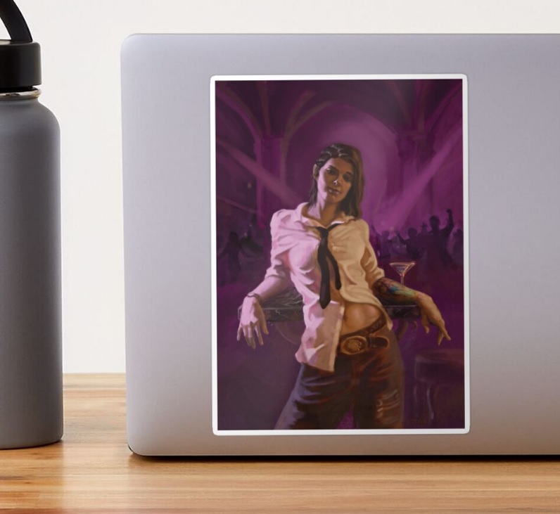 Did you notice the tiny rainbow in the cocktail glass, to match the front cover of the book, The Bartender’s Pride? Or the tiny lion’s head symbol on her belt, which is the same lion’s head symbol she has on the front door of her nightclub? You might also have noticed that the avatar on all of my social media (Twitter, Facebook, etc.,) has the same lion’s head… What other symbol would Pride have, right?